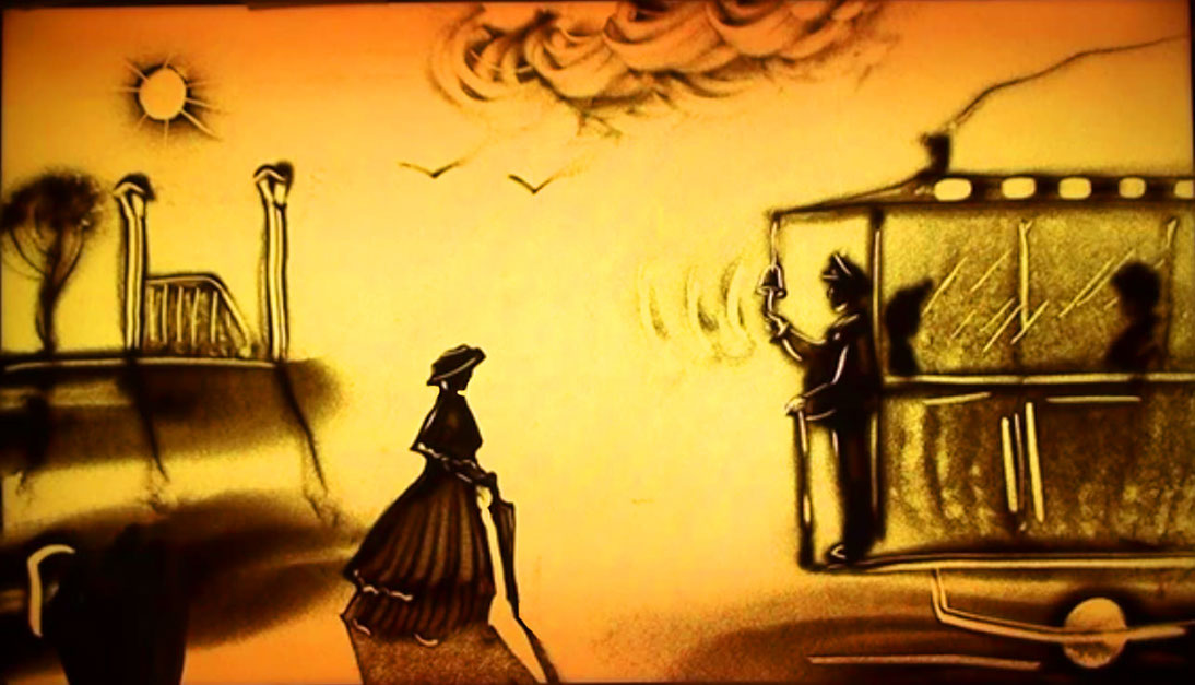 Zeichnen mit Sand, Sand bewegen, vergänglich und unendlich wandelbar, Geschichten, die zwischen den Fingern zerrinnen, so kann man die Leistung von Aljona Voynova in Worte fassen, obwohl diese einzigartige Kunst (nur wenige Menschen auf der Welt beherrschen sie) völlig ohne Worte auskommt.